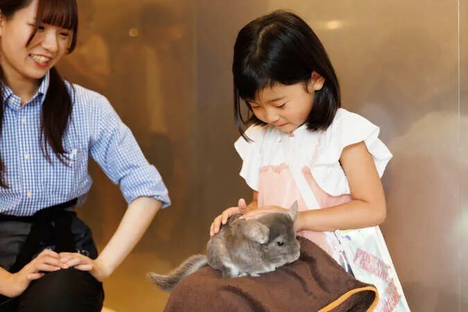 都心の一等地という立地を生かし、ショッピングや観光の合間に気軽に立ち寄れるのが魅力。ヒヨコ、チンチラ、ウサギ、インコなどの小動物とのふれあいに加え、ナマケモノなど珍しい動物とも出会えます。