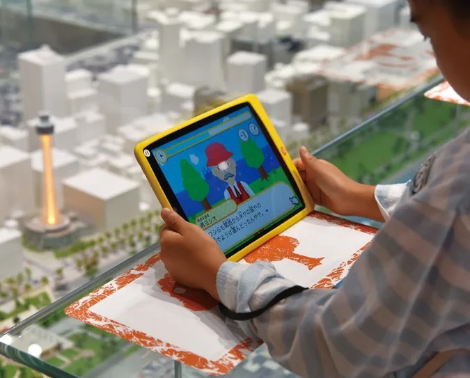 館内では、タブレットを手にジオラマの中で謎を解く「取材体験ゲーム」や、自転車での新聞配達シミュレーションが小学生に大人気。