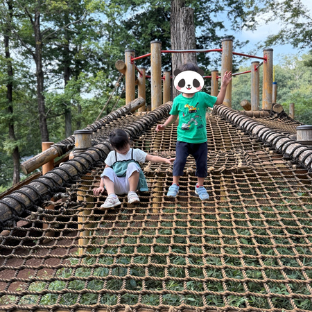 大きな網の登るのは4歳、3歳、2歳にはかなり難しそうでしたが何度も挑戦し諦めずにやっていたらできるようになり見ていて白熱して楽しかったです笑