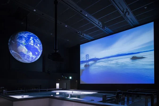 スクリーン映像と立体装置で、うずしおの仕組みを学ぶ「うずしおゾーン」では、自然界のうずしおを現実と同じように発生させる世界でも珍しい水理模型「ウズネタリウム」が見られます。