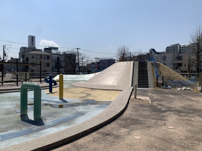 複合遊具や砂場などがある児童公園のほか、夏季限定の人気スポット「じゃぶじゃぶ池」では、0歳から12歳の子供が無料で水遊びを楽しめます。