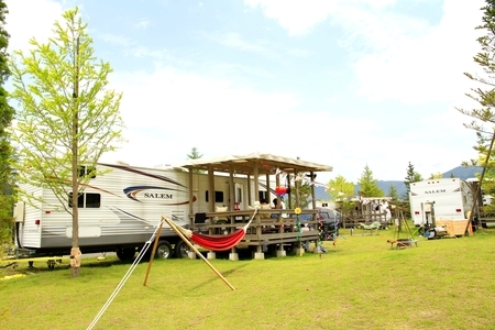 アメリカ直輸入のトレーラーハウスやコテージに泊まれ、BBQを楽しめます。豊かな自然の中で水遊びや昆虫採集など、子供が思いっきり遊べる環境が整っています。