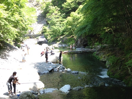 ヤマメやイワナなどが釣れ、釣った魚はその場でバーベキューができます。釣竿のレンタルもあるので、手ぶらで気軽に釣りが楽しめる家族向けのスポットです。