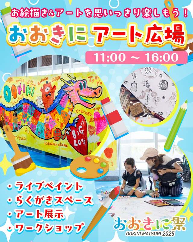 メインアリーナ2階では「おおきに絵画コンクール」の全作品展示や「おおきにアート広場」でのライブペイント、ワークショップを実施します。