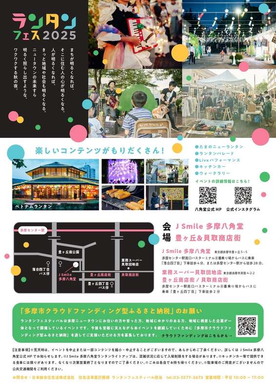 東京都多摩市の豊ヶ丘・貝取エリアで、2025年10月11日(土)〜12日(日)まで「多摩ランタンフェスティバル2025」が開催されます。