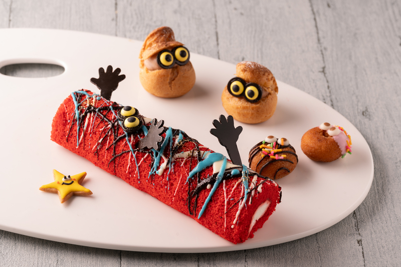 デザートには、「芋虫風さつま芋ロール」や土日祝限定の「ミイラマフィン」などユニークなメニューが登場しますよ。