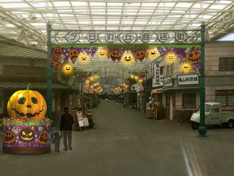 また、1960年代の昭和を再現した「夕日の丘商店街」は、緑や紫などの鮮やかなハロウィンカラーで飾られます。