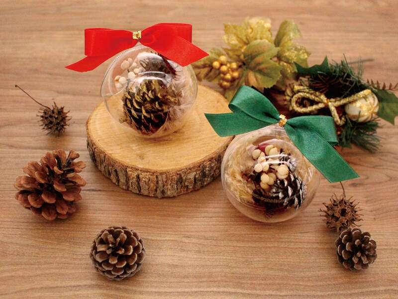 昨年好評だった「クリスマスオーナメントづくり」が今年も開催されます。ドライフラワーや松ぼっくりなど森の素材を使って、500円(税込)でオリジナル作品を制作できます。