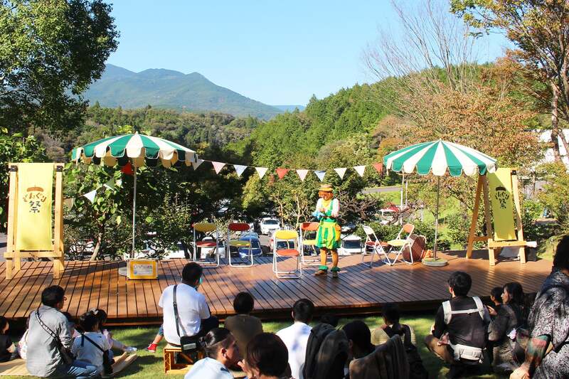 笠置山を臨む特設ステージでは「どんぐり芸術祭」を開催。地元出身のロックバンド「The Canadian Club」の音楽ライブや、子供に大人気のクラウンショーが無料で観覧できます。