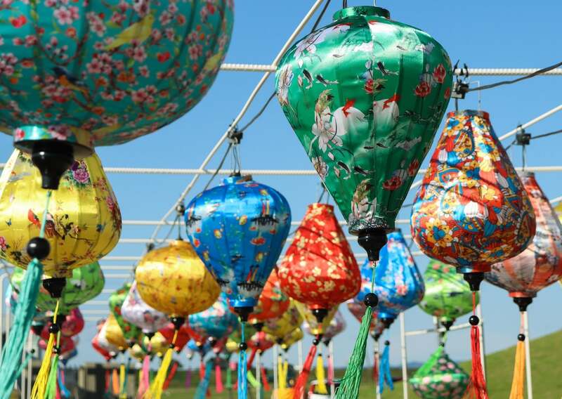 この景色を仙台で体感できるよう、約200個のホイアンランタンがライトアップされます。日中はカラフルなランタンが映え、夜には淡く灯って異国情緒満点の空間が広がります。