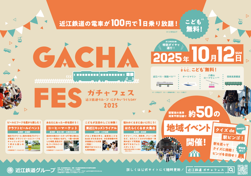 2025年10月12日(日)に、近江鉄道沿線全体を舞台にした大型イベント「ガチャフェス2025」が開催されます。