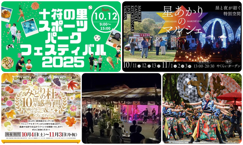 秋の夜長にぴったりのマルシェや戦国イベント、UFOをテーマにした異世界フェスなど、大人も子供も楽しめるイベントがたくさん開催されますので、「スポーツの日」を含む、2025年10月11日(土)・12日(日)・13日(月・祝)の三連休も家族でおでかけを楽しんでくださいね!
