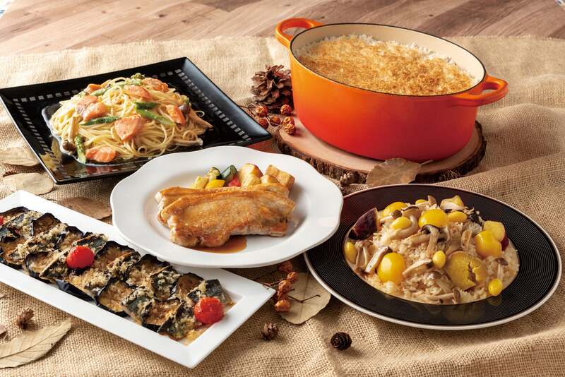 チョコブラウニーやスイートポテト、プチシューなどのスイーツから、洋梨のシャルロットや栗のモンブランタルトなどのデザートまで、多彩なスイーツが用意されます。