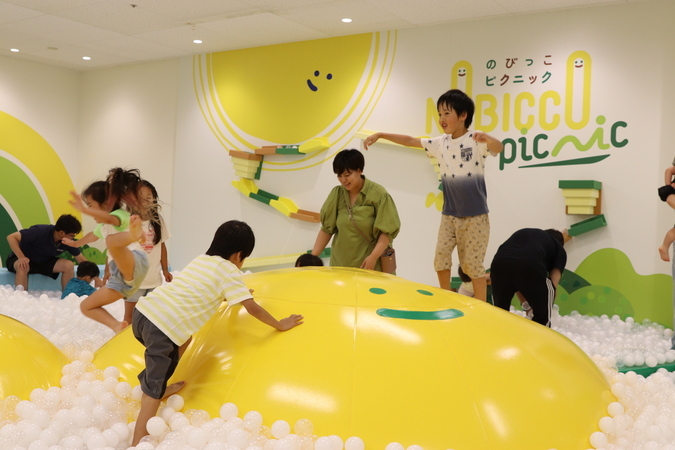 「のびっこピクニック」は、家族みんなでのびのび過ごせる新感覚のプレイグラウンドです。広々とした人工芝エリアで、まるで公園ピクニックのような体験ができます。