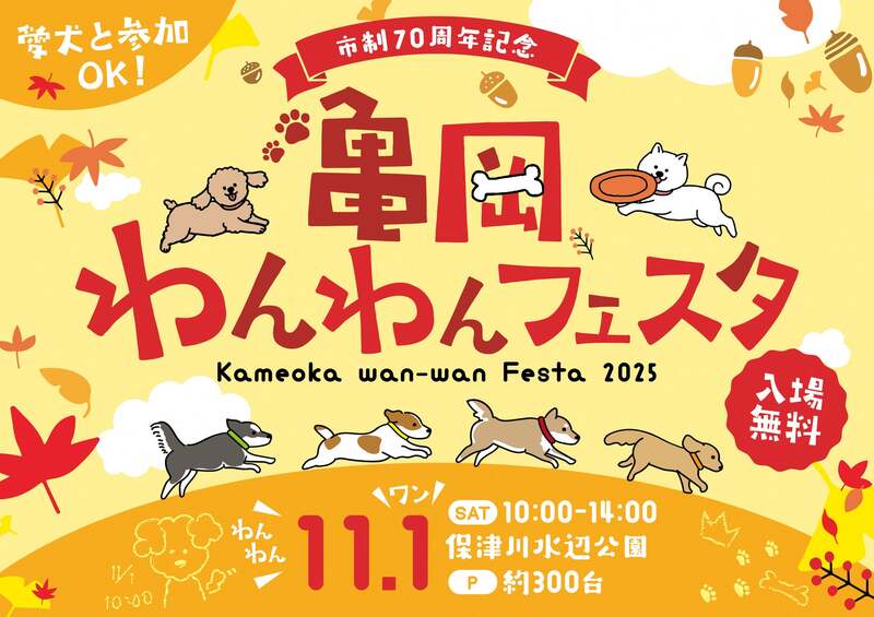 京都府亀岡市の保津川水辺公園で、2025年11月1日(土)に「亀岡わんわんフェスタ2025」が初開催されます。