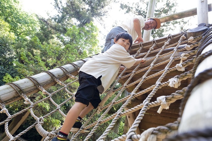 ワンパク王国、メルヘンの丘、子ども美術館、自然体験、花の城の5つのゾーンがあり、四季折々の花々や木々に囲まれながら、アスレチックや工作体験、童話の世界に没頭できるなど、子どもから大人まで一日中楽しめる魅力があふれています。
