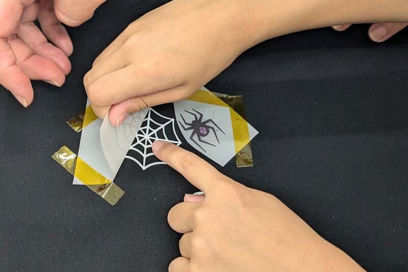 ワークショップでは、ハロウィンや森の植物といった秋を感じさせるデザインが豊富に用意されています。参加者は好きなものを選んで自由に組み合わせ、その場でアイテムにプリントし、こだわりと秋の雰囲気がぎゅっと詰まったオリジナルグッズを作ることができます。