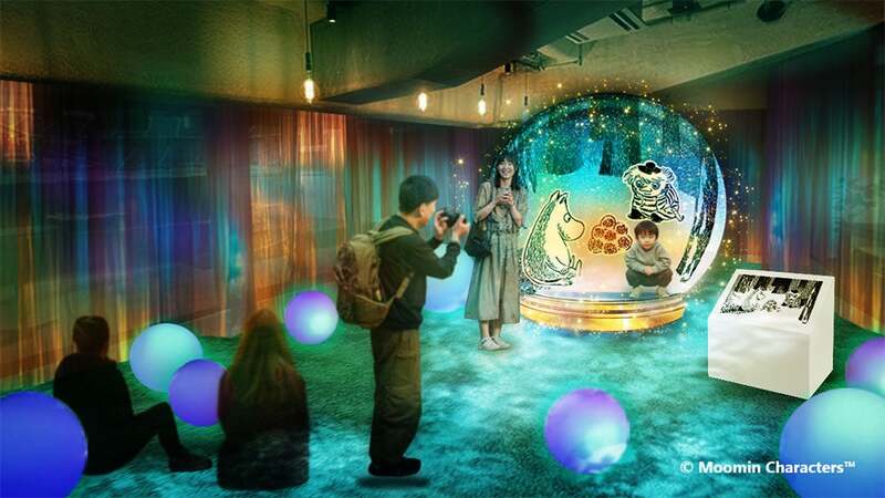 「オーロラの下での出会い」では、雪を初めて見るムーミンの世界を体験。森の中でオーロラを眺めながら、冬眠から目覚めたムーミンがトゥーティッキと出会う物語のスノードームパネルで記念写真も撮影できます。