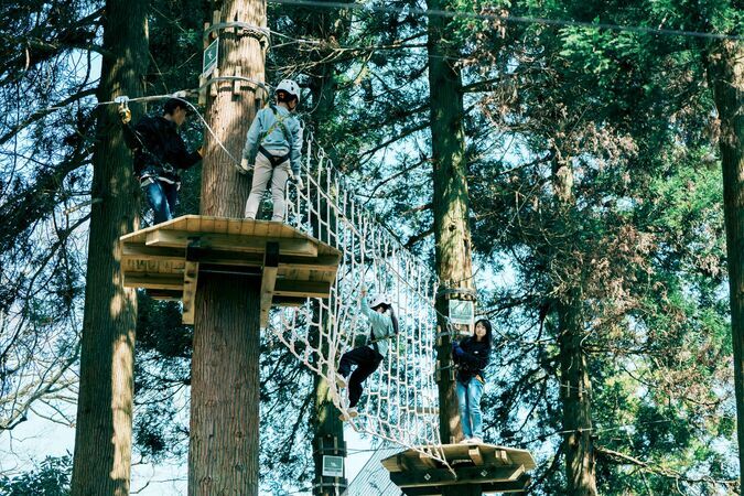 110cmから体験可能なチャレンジコースや、140cmから挑戦できる全長180mのジップラインコースもあり、子供から大人まで安全に楽しめます。親子で自然の中の爽快な冒険を体験してみてはいかがでしょうか。