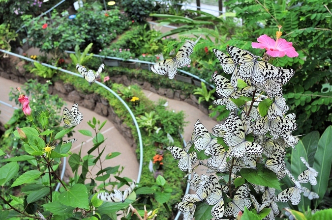 世界中の昆虫が展示されており、昆虫とのふれあいや自然との関わりを楽しく学べます。約10種1000匹の蝶が飛び交う蝶の園は必見です。