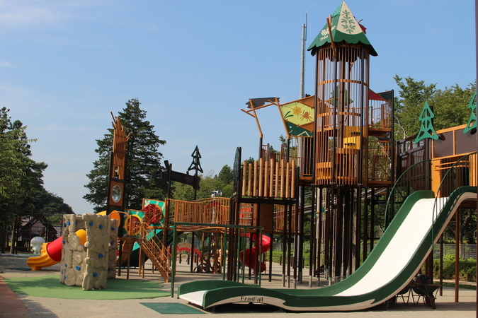 東北地方最大級のネット遊具やクライミング、スライダーなどの大型遊具が揃っています。