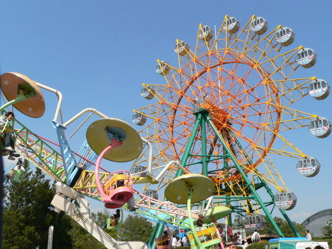 高さ30mの観覧車や全長700mのジェットコースターなど、約12種類の乗り物やアトラクションが広大な敷地に設置されており、子供から大人まで一日中楽しめます。