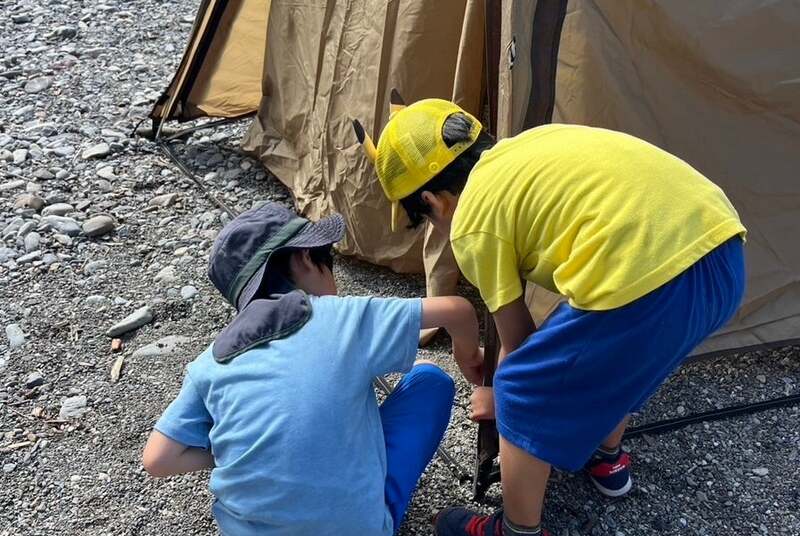 このプログラムでは、午前10時から午後2時まで約4時間にわたって、キャンプの基本技術を学ぶことができます。テント設営体験では、親子で協力してテントの設営に参加できます。