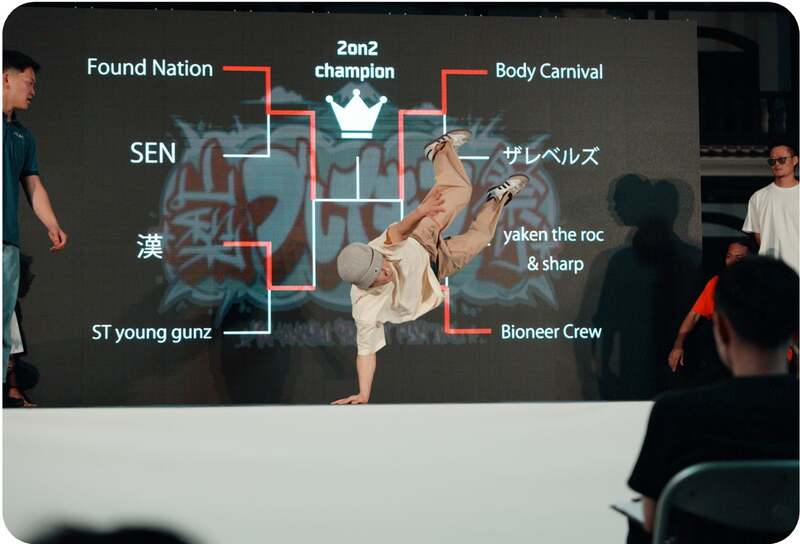 イベントでは、世界で活躍する豪華ゲストが出演し、本格的なダンスバトルが繰り広げられます。バトルは、15歳以下が参加できる「ブレイキンソロバトル」と、年齢制限のない「オープンブレイキン2on2バトル」の2種類です。