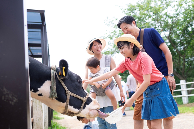 乳搾り体験やバター・ジャム作り、動物とのふれあい、季節の花々や味覚狩りなど、親子で自然を満喫できる場所です。ドッグランやキャンプ場も併設されているので、愛犬と一緒に家族みんなで楽しい思い出作りができますよ。