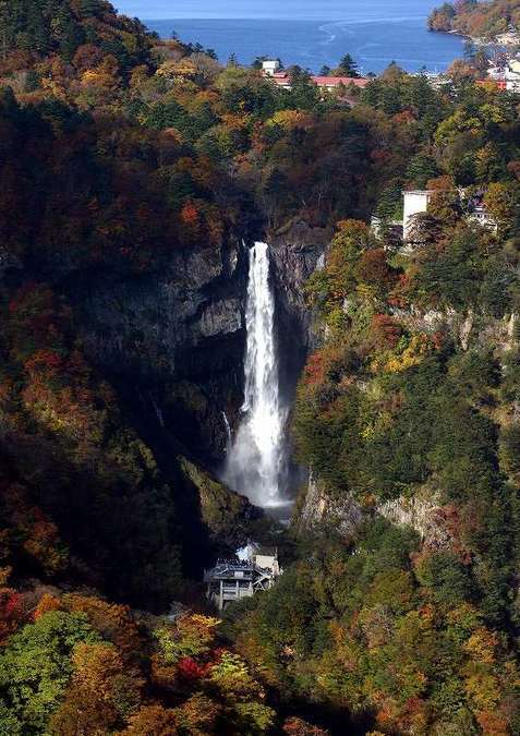 日本三名瀑のひとつ、「華厳滝」は中禅寺湖の湖水が流れ落ちる迫力満点の滝です。