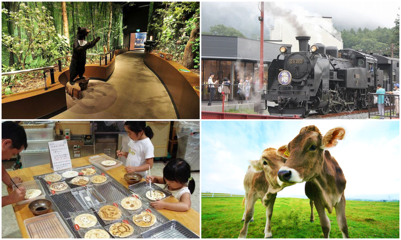 小さい子向けの無料遊具や、大迫力の木製アスレチックなどのアクティビティが充実。キャンプ場やレストラン、地元の特産品を販売する直売所もあります。