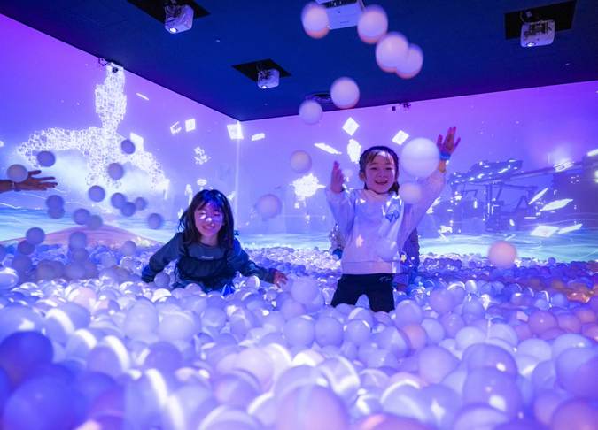 最新デジタル技術を活用した9種類のアトラクションで、ボールプールや砂遊び、お絵かきなどの遊びが"未来の遊び場"に大変身。