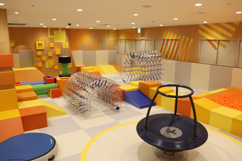 都心から30分強で行ける立地で、駐車場無料なのも魅力。子供に人気のふわふわドームは都心近郊最大級の5山あり、ボーネルンド監修の室内遊び場も併設。