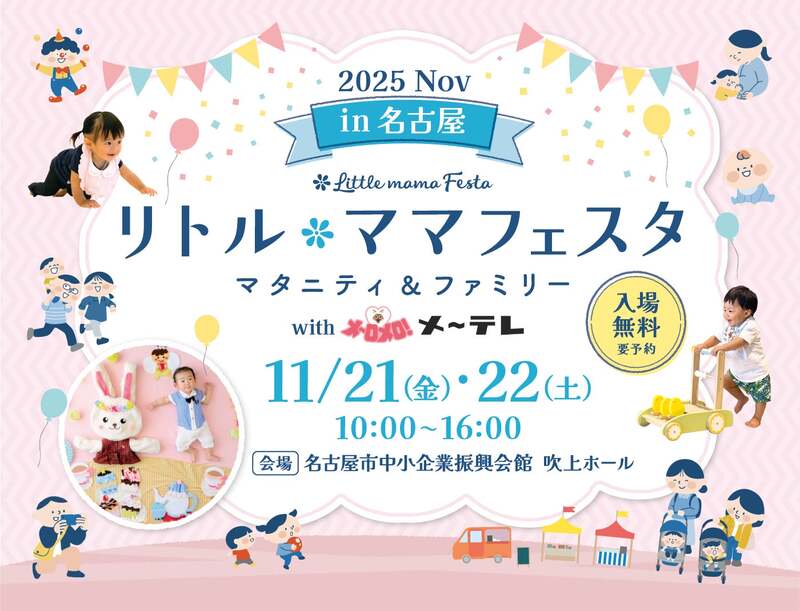 愛知県名古屋市の名古屋市中小企業振興会館 吹上ホールで、2025年11月21日(金)・22日(土)に「リトル・ママフェスタ 名古屋2025Nov with メ〜テレ」が開催されます。