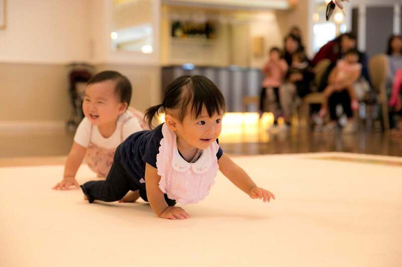 大人気のレース企画では、年齢に応じた3つのレースが用意されています。ハイハイレースは13ヶ月頃までの赤ちゃんが対象で、ずりばいでも参加可能です。