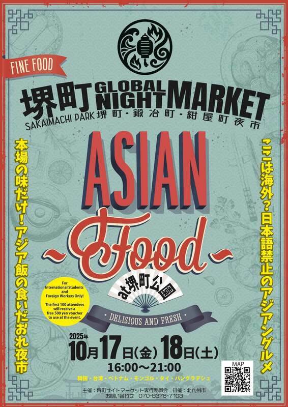 韓国、台湾、ベトナム、モンゴル、タイ、バングラデシュという6つの国から、本格的な屋台グルメが堺町公園に集まります。食欲の秋、そして文化の秋にぴったりの、バラエティ豊かな料理を味わえるチャンスです。