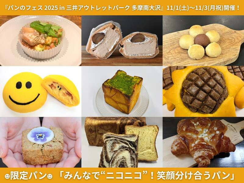 東京都八王子市の三井アウトレットパーク多摩南大沢で、2025年11月1日(土)〜3日(月・祝)まで、「パンのフェス2025 in 三井アウトレットパーク 多摩南大沢」が開催されます。