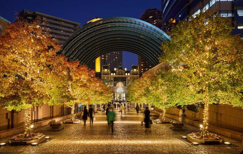 時計広場には全長約10mのクリスマスツリーが登場し、シャンデリアへ続く坂道のプロムナードを中心に、シャンパンゴールドを基調とした約10万球の光のイルミネーションがきらめきます。