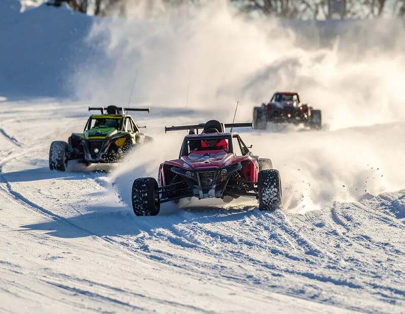 もう一つの新アトラクション「雪上ラジコンパーク」では、雪原につくられた特設コースで雪上ラジコン操作が楽しめます。豊富なラインナップの中からお好みの車両をレンタルして、雪上ドリフトにチャレンジできます。