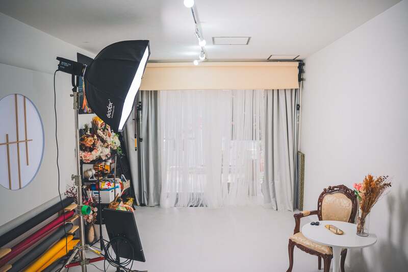 白を基調としたコンパクトなスタジオには、プロ仕様の照明・背景を完備。ポップな背景から浅草店オリジナル造作窓での撮影まで、多彩な背景での撮影が楽しめます。