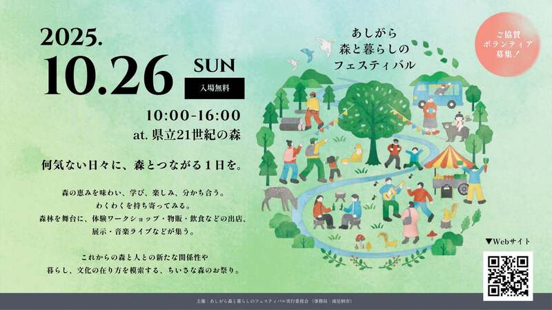 神奈川県南足柄市の県立21世紀の森で、2025年10月26日(日)に、「あしがら森と暮らしのフェスティバル」が開催されます。