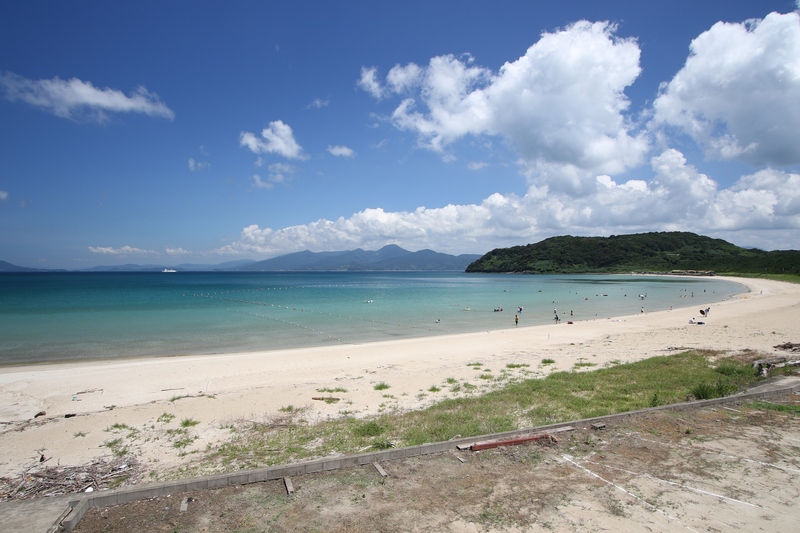 玄界灘に面した「相賀の浜」は、沖に神集島を望む美しい海岸です。海は穏やかで、県内屈指の透明度を誇ります。