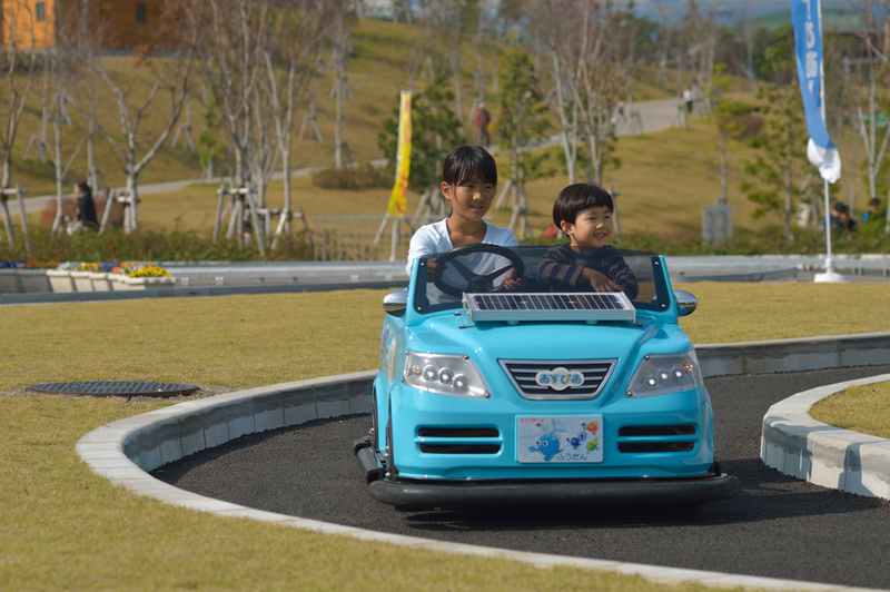 館内ではタブレットやデジタル地球儀を使った学習プログラムがあり、館外には燃料電池や太陽電池を乗せた電動ゴーカートなど無料で遊べる公園スペースも充実。