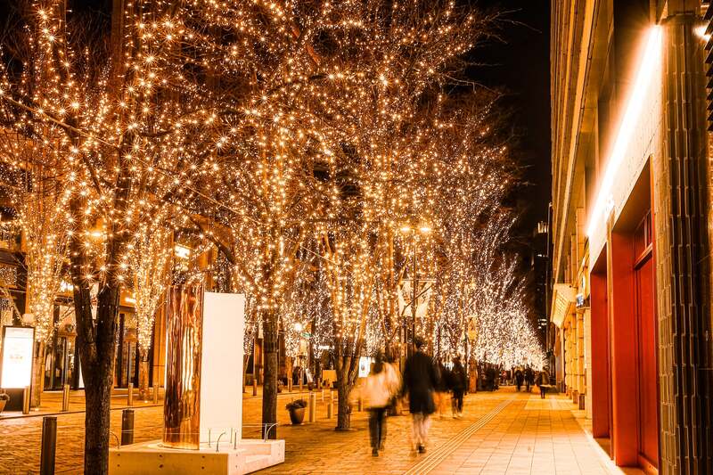 24年目を迎える恒例イベントで、約1.2kmの丸の内仲通りを中心に、約77.5万球のシャンパンゴールド色のLEDが街路樹を彩ります。