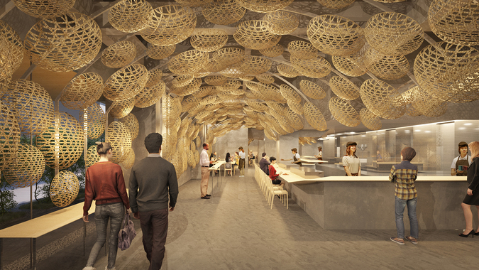 1階にはこども図書館やカフェも併設され、親子で楽しめる空間です。
