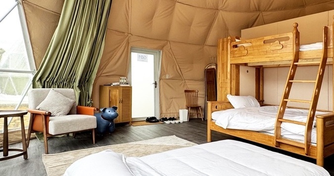 ファミリー向けの広々とした客室やペット同伴可能なグランピングテントもあり、家族みんなでゆったりと快適に過ごせます。
