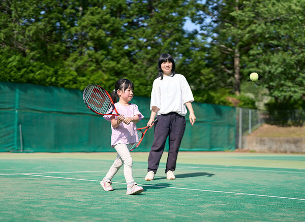 屋内外に充実したスポーツ施設があり、全天候型なので天気を気にせずにスポーツを楽しめます。温水プールや体育館、トレーニングルームなどで身体を動かした後は、準天然温泉の「長柄カルナの湯」でゆっくりと疲れを癒やすことができますよ。