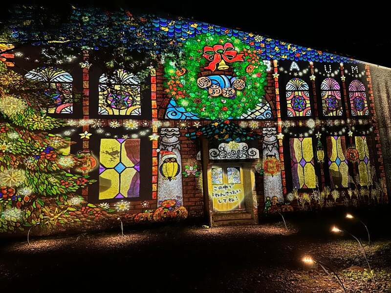 「風鳴館」では大きなクリスマスツリーがお出迎えし、ハロウィンとクリスマスをテーマにした特別演出が楽しめます。光の切り絵の中に入り込んで撮影できる人気のフォトスポットもあり、訪れるたびに新たな発見と感動が待っています。