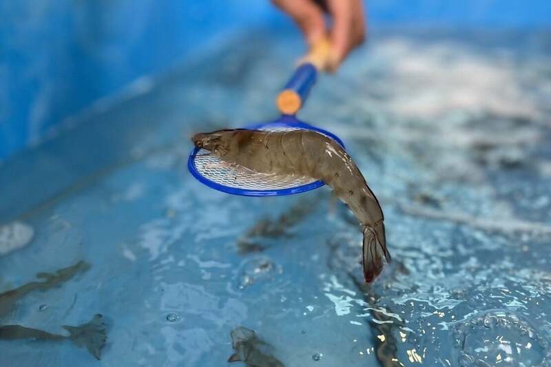 金魚すくいならぬ「エビすくい」を体験