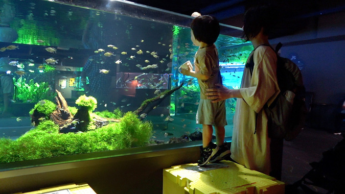 世界の美しい水辺をテーマに、多摩川から熱帯雨林まで、さまざまな環境の生きものを最先端技術で展示。昼夜で異なる空間演出や、リアルな自然を感じる空間で、五感を刺激する体験ができます。